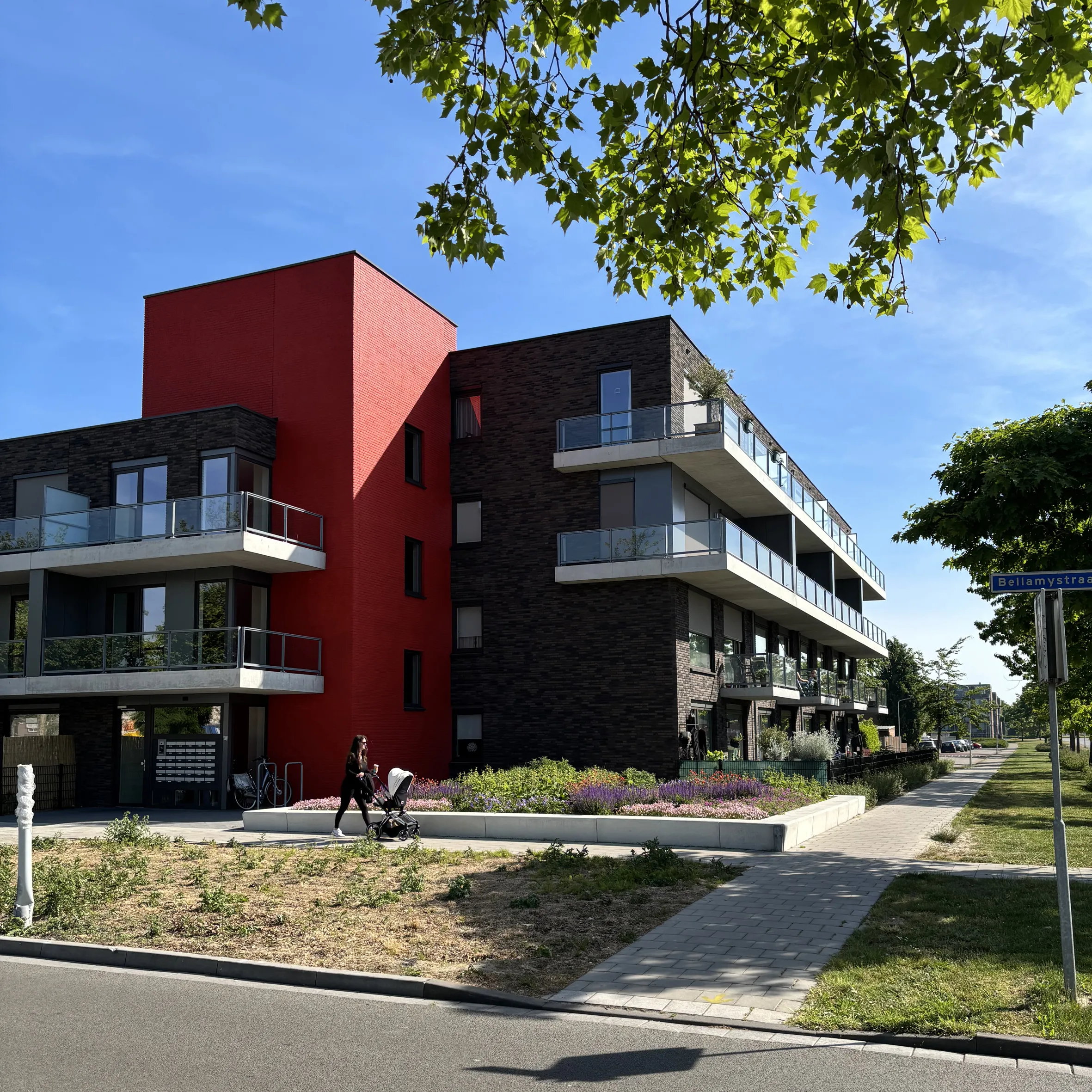 34 appartementen op markante locatie bij het winkelcentrum Zuidpolder in Terneuzen. 18 tweekamer appartementen van 54m² aan de Bellamystraat en 16 driekamer appartementen van 76m². Deze laatsten hebben twee gelijkwaardige slaapkamers i.p.v. de gebruikelijke 2e mini slaapkamer. In de basis een eenvoudig bouwblok wat door de vormgeving van de balkonbanden en het rode stijgpunt een bijzondere uitstraling heeft gekregen.