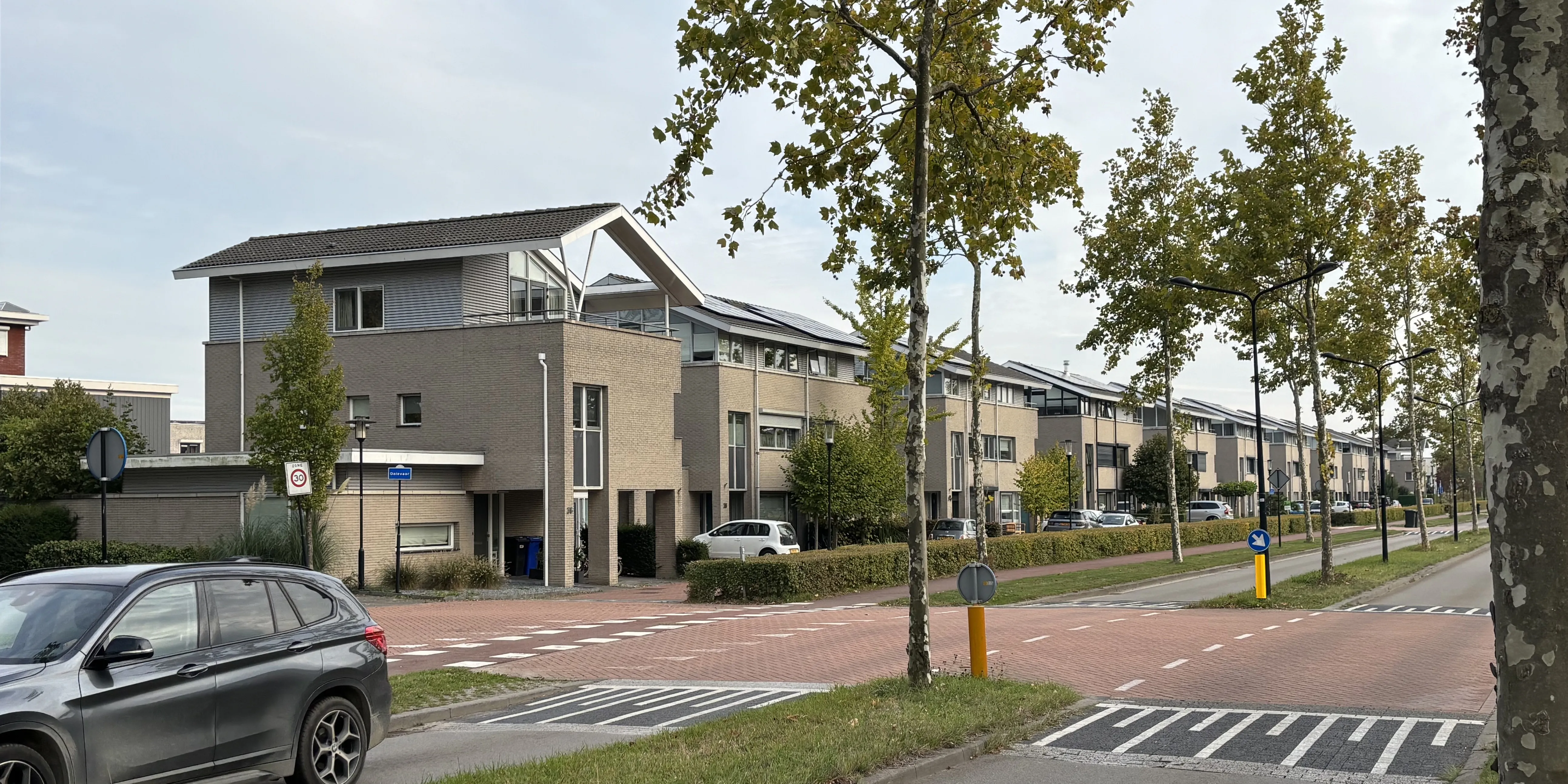 Een project uit het verleden om trots op te zijn. Brede woningen aan een bomenlaan. Geen garageboxen als beëindiging, maar een woonfunctie met uitstraling. Eén van de hoofdontsluitingen van de woonwijk, een laan met allure.