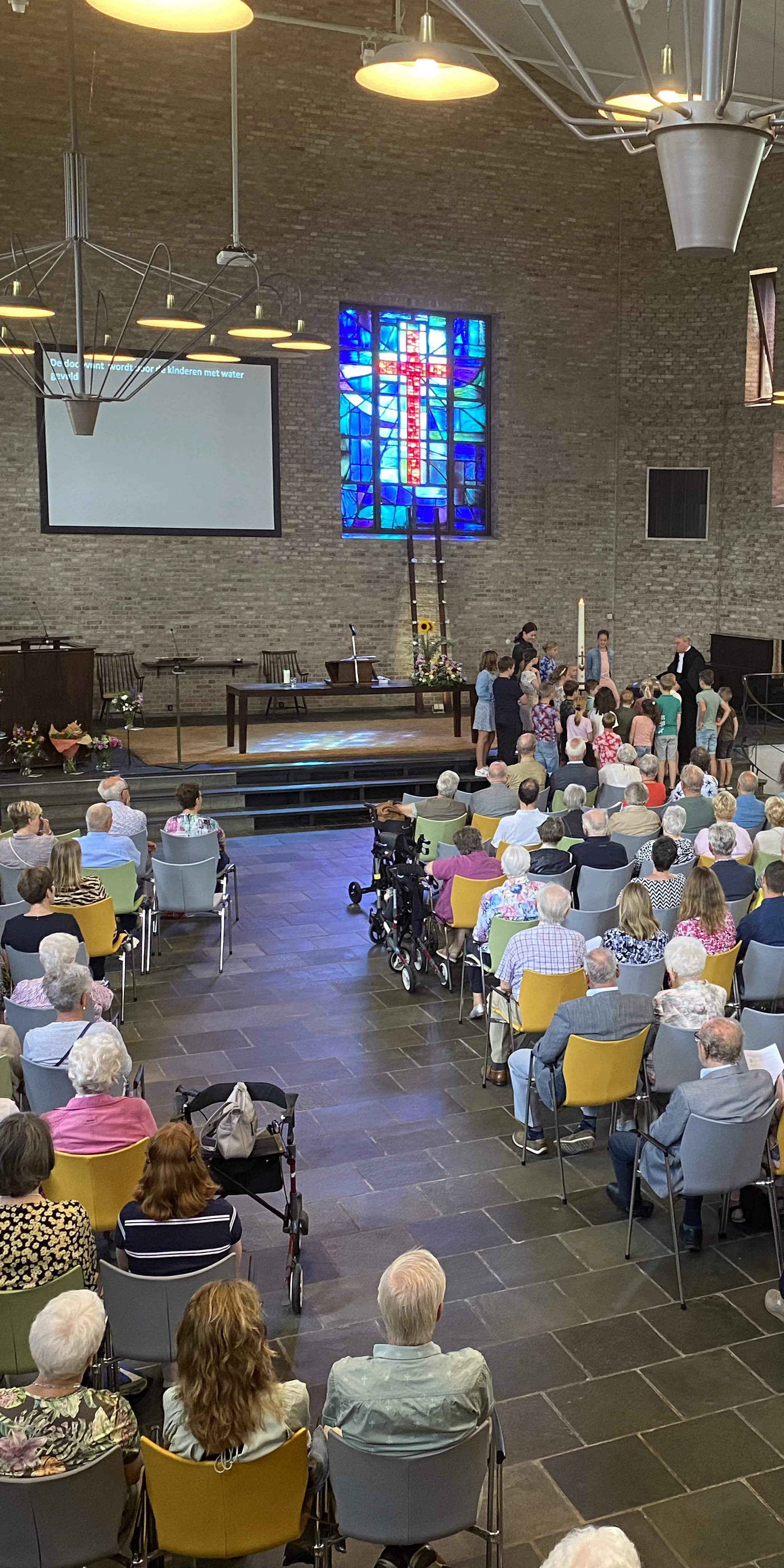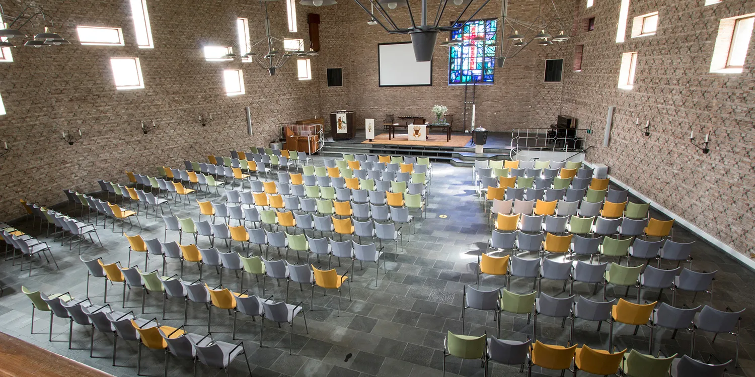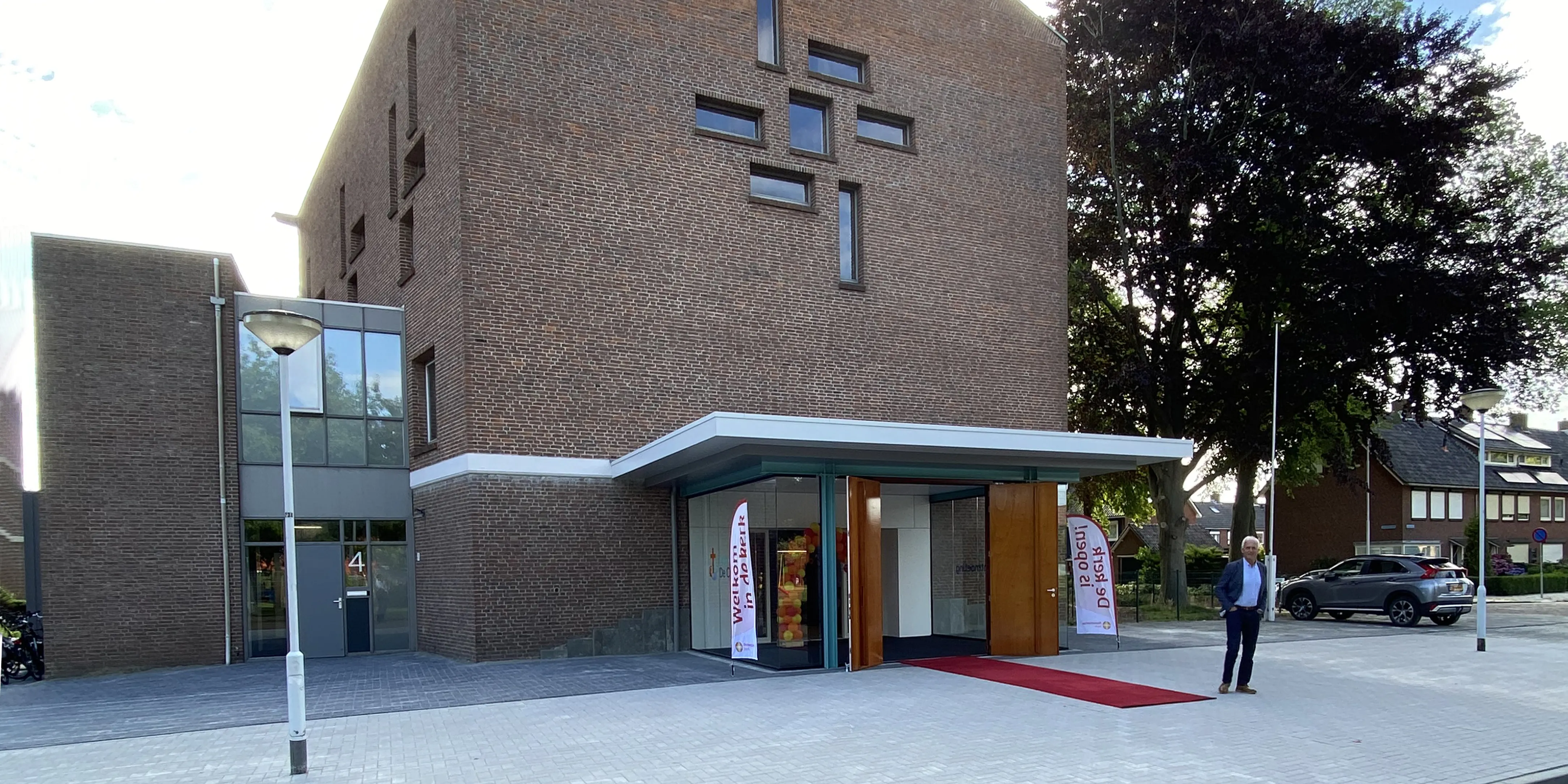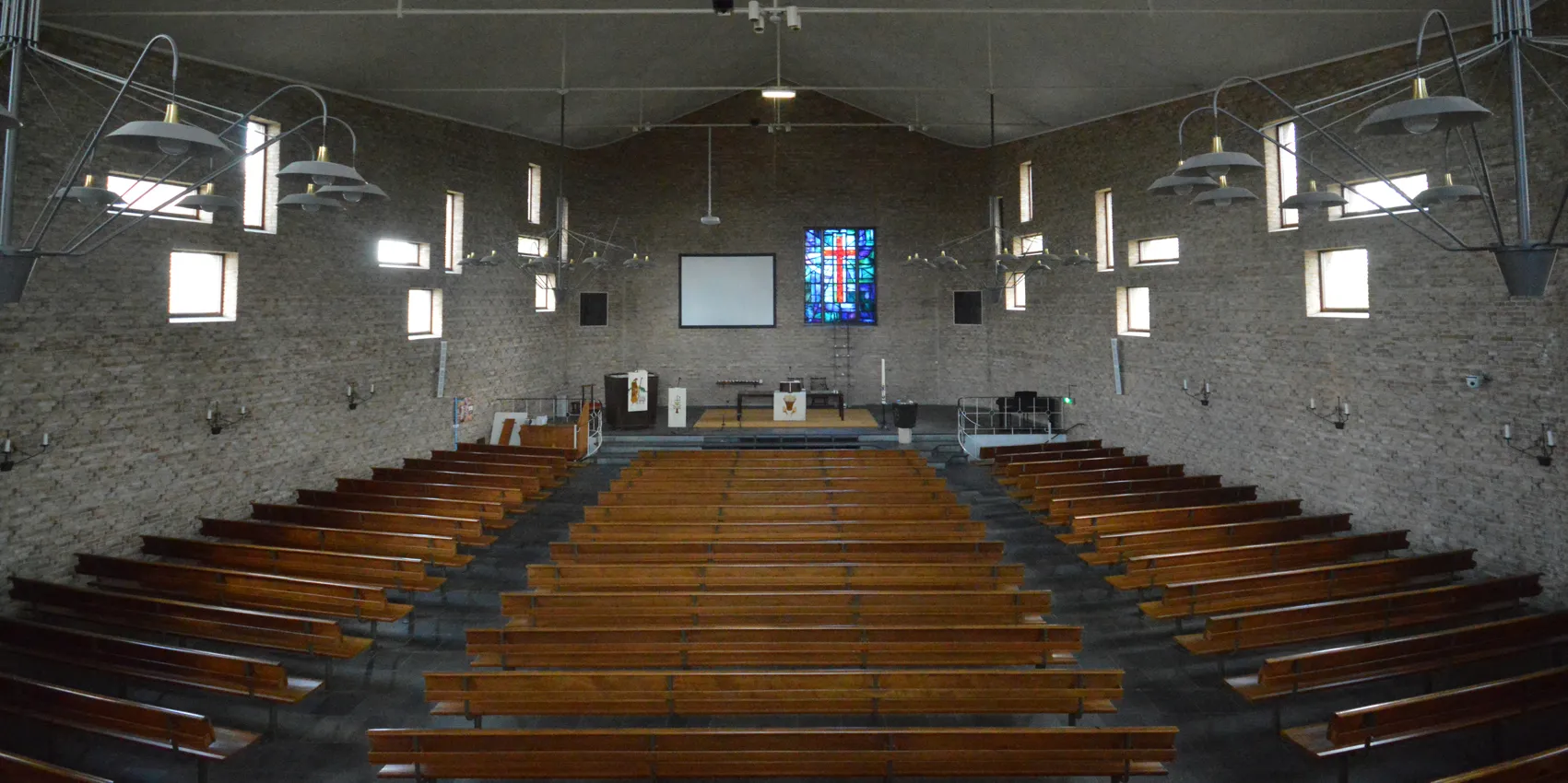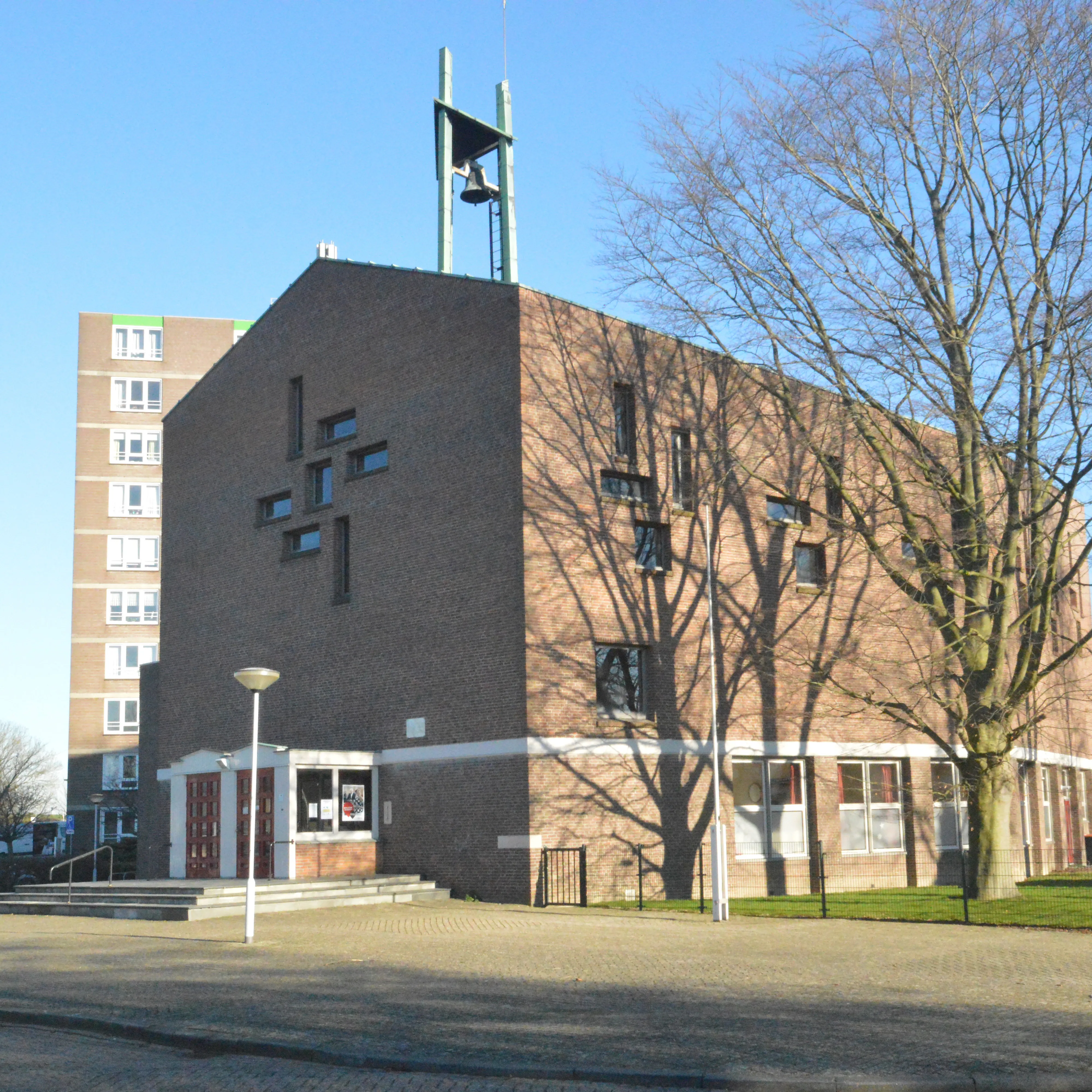 Gebouwd in 1964 met zalen op de begane grond en kerkzaal op de verdieping was de toegankelijkheid via de verhoogde entree problematisch voor ouderen. Een nieuwe entree van dit introverte gebouw vormt nu een uitnodigend gebaar. De kerkbanken, waar mensen geneigd zijn om achterin en in de hoeken te gaan zitten, zijn hier vervangen door stoelen.