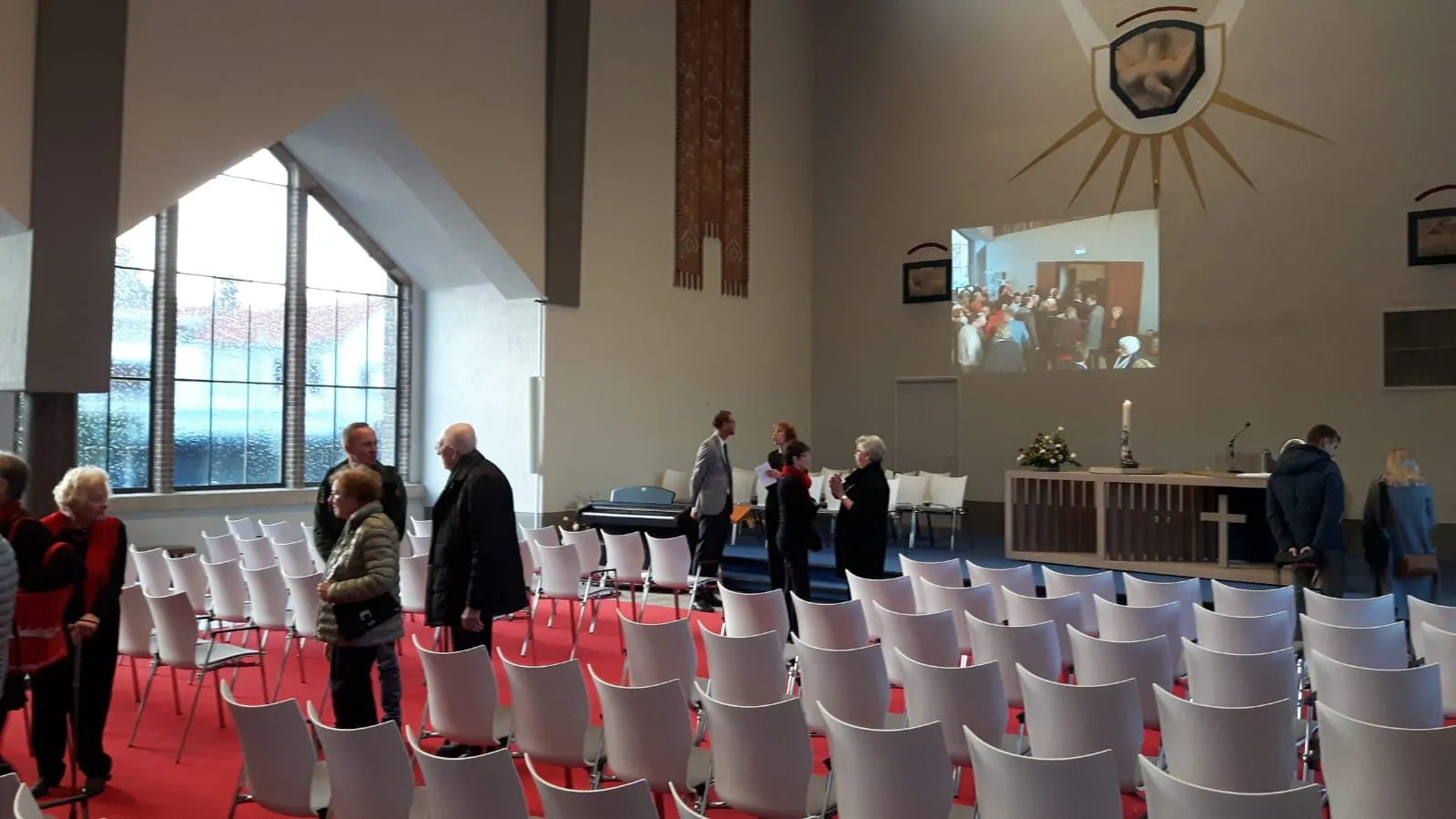 Het interieur van deze protestantse kerk, die begin jaren '50 is gebouwd en die de afgelopen decennia erg rommelig was geworden, hebben wij vernieuwd. Niet alleen de eredienst, maar ook ontmoeting staan centraal in deze grote ruimte. Met stoelen en verrijdbare garderobemeubels is de ruimte multifunctioneel inzetbaar.