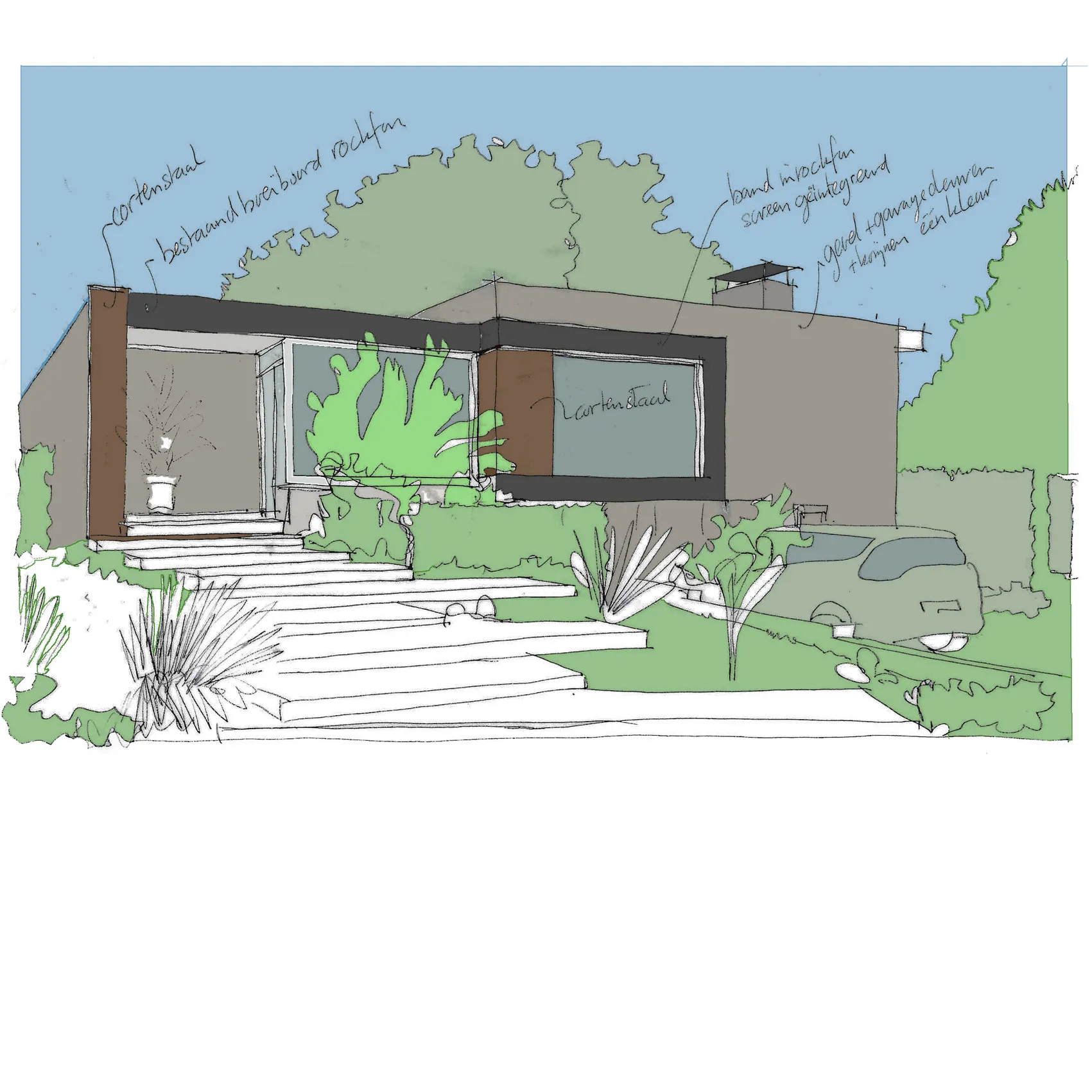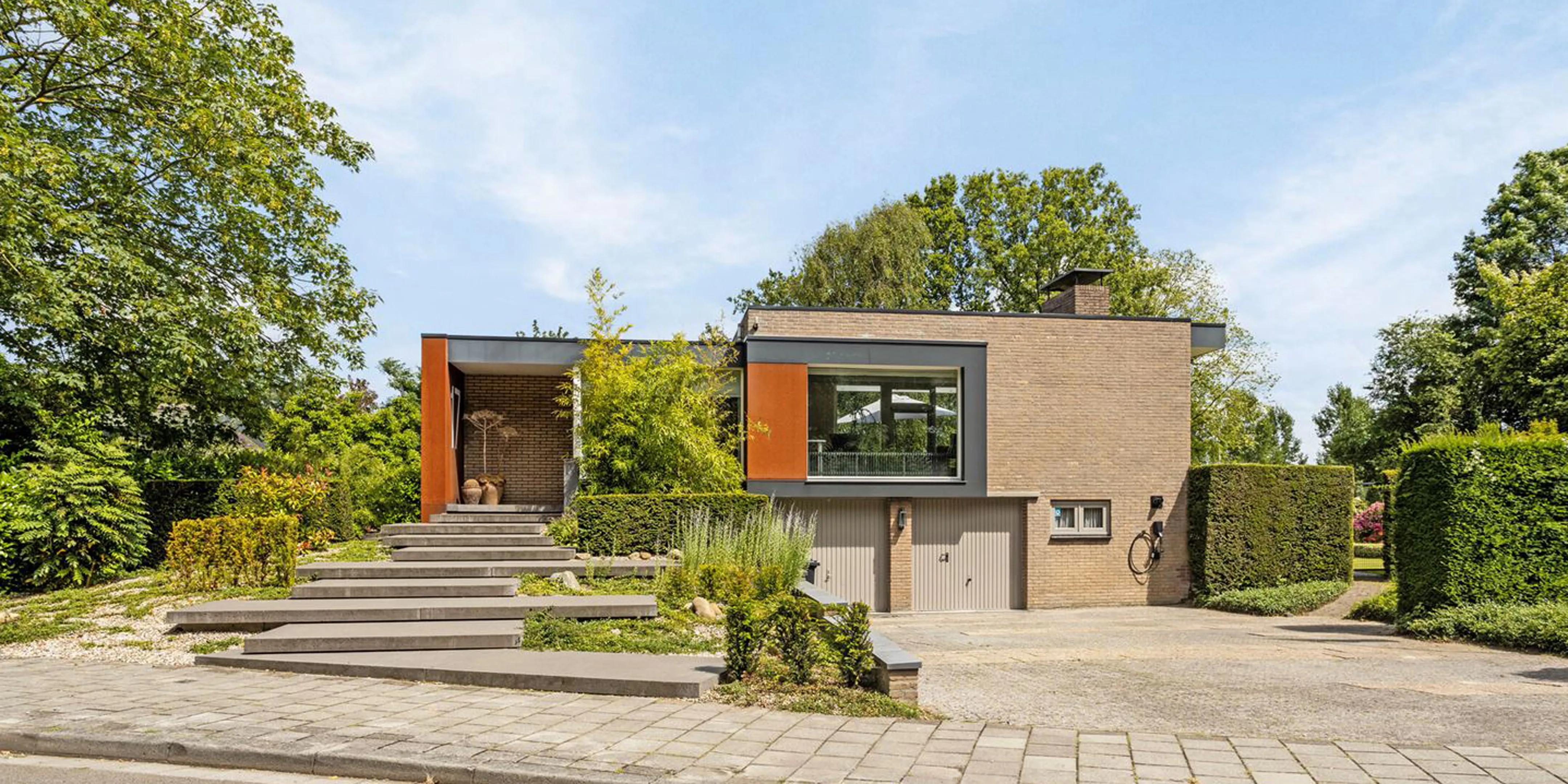 Met een kader rondom de ramen in combinatie met cortenstaal kreeg de woning uit de jaren ’70 een fris nieuw gezicht. Momenteel wordt het interieur ingrijpend verbouwd en gemoderniseerd.